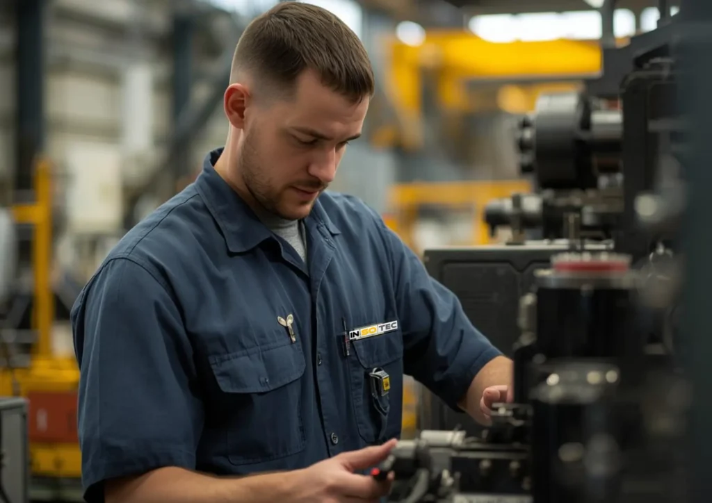 Serwisant przyjeżdża do Ciebie i sprawdza stan instalacji: pompy hydrauliczne, siłowniki, szczelność, parametry pracy i jakość oleju hydraulicznego.